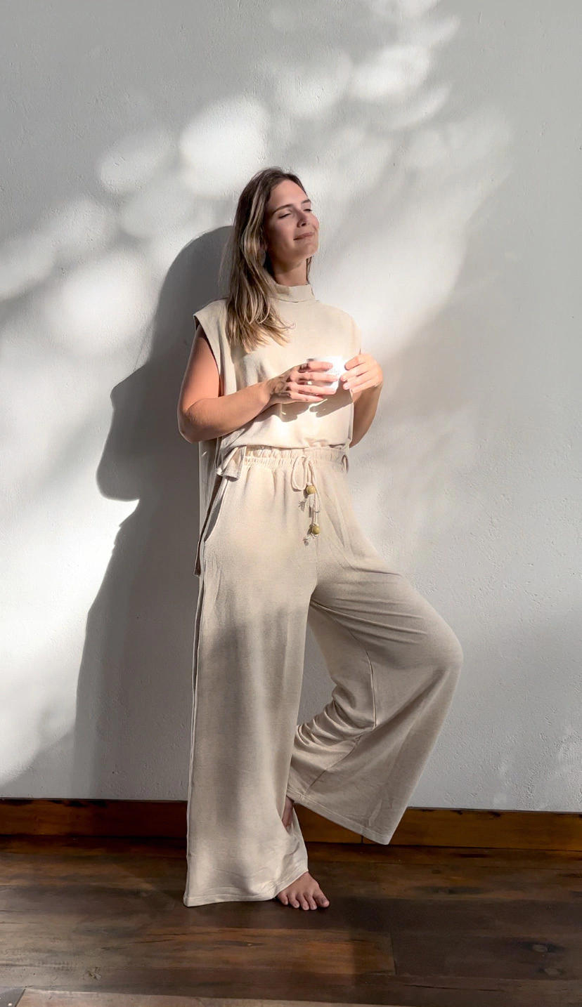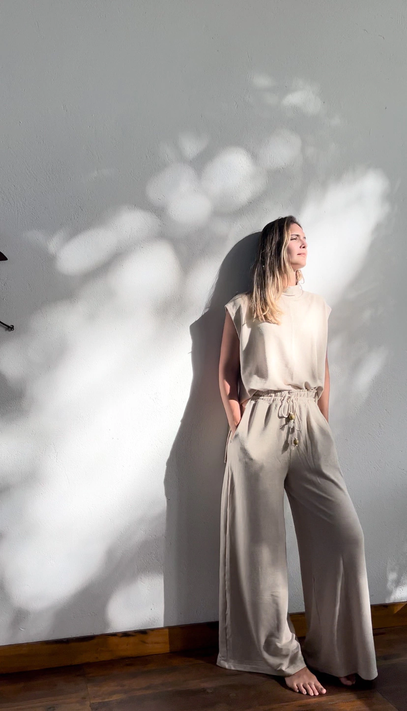 Pantalona Bolso super ampla, confortável, para te deixar livre e permitir todos os seus movimentos. Com dois bolsos na parte da frente, no cós é feito com elástico e cordão com detalhe.